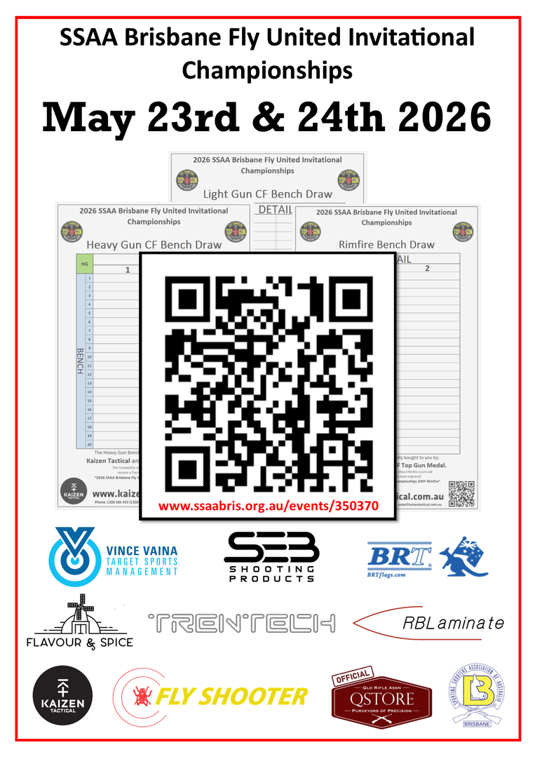 Use the QR code or type the link at the bottom of the QR code in to your browser for all the details on the 2026 SSAA Brisbane Fly United Invitational Championship.